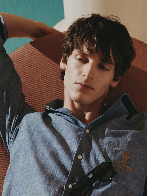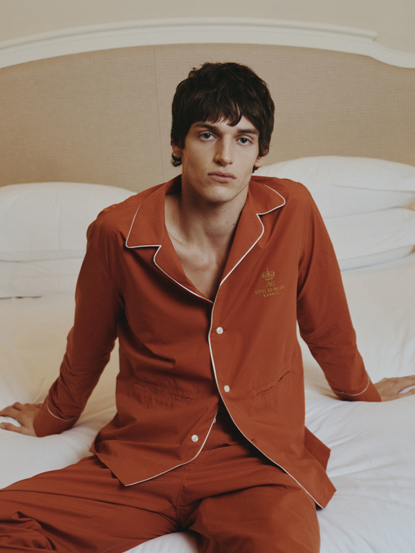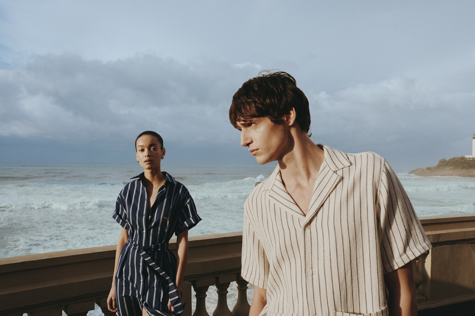 Parmi les pièces phares de la capsule, on retrouve la chemise Eugénie en popeline marine rayée, revisitant une coupe emblématique de Figaret dans une version ample et fluide, parfaite pour les journées en bord de mer. Les chemises Guétary, Ainhoa et Olatua, déclinées en chambray décontracté, popeline blanche ou rayures rouille, offrent une élégance estivale et mixte. La robe-chemise Belharra, hommage à la vague mythique du Pays basque, se distingue par son boutonnage et sa ceinture amovible, pour une silhouette à la fois structurée et libre. La chemisette Luz, avec son col pyjama et son coton ajouré, est la pièce solaire par excellence, tandis que l’ensemble pyjama Palais et le short Ithiarritz réinterprètent le vestiaire hôtelier dans une teinte rouille inspirée de l’architecture locale. La collection se complète d’accessoires exclusifs, comme une casquette brodée et des chaussettes siglées, conçus comme des souvenirs d’un été passé sur la côte basque.